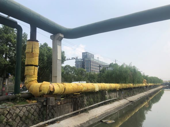浙江富春江環保熱電有限公司始建于2003年12月,公司位于浙江省杭州市富陽區靈橋鎮江南造紙工業功能區,日處理垃圾800噸,年處理垃圾20萬噸以上,是杭州地區最大的環保公用型垃圾發電及熱電聯產企業。2008年1月25日公司依法整體變更為浙江富春江環保熱電股份有限公司,并于2010年9月21日在深圳成功上市,公司簡稱“富春環保”,股票代碼002479。 2019年由于三星熱電廠面臨關停,屬于三星熱電廠供熱范圍內的原有熱用戶供汽得不到保證,浙江富春江環保熱電有限公司配合富陽區政府意見和浙江清園生態熱電有限公司共同向原屬于三星熱電廠供熱范圍內的熱用戶共同供熱。 目前,浙江富春江環保熱電股份有限公司已建有1根DN600供熱蒸汽管道與三星供熱蒸汽管道連通,項目分兩步進行,第一步對原三星部分管網需要進行改造。改造后可供熱420t/h。第二步考慮增加一根浙江富春江環保熱電與三星熱電之間的DN500連通管道來滿足供熱需求。項目至2019年8月管線建設完工,目前已通汽運行。