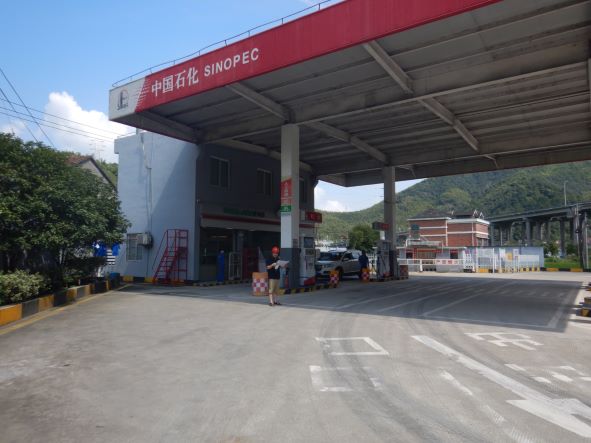 中國石化銷售股份有限公司浙江杭州富陽新關加油站(以下簡稱“新關加油站”)是中國石化銷售股份有限公司浙江杭州富陽石油支公司下屬加油站,成立于2000年12月4日,位于浙江省杭州市富陽區大源鎮觃口村觃口1005號,主要經營汽油、柴油的零售業務(不涉及散裝汽油和自助加油),法人代表盛丹峰,統一社會信用代碼為91330183793694865A,該站現有員工2人,其中安全管理人員1人。 中國石化銷售股份有限公司浙江杭州富陽新關加油站持有浙江省商務廳核發的成品油零售經營批準證書(油零售證書第31140056號),持有原杭州市安全生產監督管理局核發的危險化學品經營許可證,登記編號:浙杭安經字[2018]10005170,有效期:2018年9月27日至2021年9月26日,許可經營范圍:帶儲存經營成品油:汽油;不帶儲存經營(店面零售)成品油:煤油。 加油站安裝有汽油卸油和加油油氣回收系統。加油區設置加油罩棚,罩棚頂部為輕鋼結構。罩棚下設置4臺雙油品雙槍潛油泵式加油機(汽油加油槍帶油氣回收);埋地油罐區設有2只30 m3和1只50 m3埋地臥式SF雙層油罐(非車道罐),其中30m3埋地臥式汽油罐2只,50m3埋地臥式柴油罐1只,油罐總容積折算為85m3(柴油罐折半計入),根據《汽車加油加氣站設計與施工規范》GB50156-2012(2014年版)的相關規定,該加油站為三級加油站。