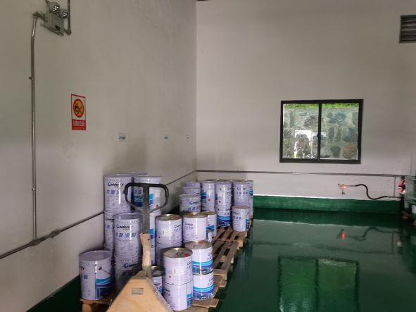 企業(yè)生產(chǎn)過程中使用的危險(xiǎn)化學(xué)品為PU漆和UV漆。PU漆包括PU漆底漆、PU漆面漆、PU稀釋劑、PU漆固化劑,火災(zāi)危險(xiǎn)性均為甲類;UV漆包括UV底漆、UV面漆,火災(zāi)危險(xiǎn)性均為丙類。PU漆在噴漆工藝中使用,使用地點(diǎn)為3#廠房2層噴漆間內(nèi),共設(shè)有2個(gè)噴漆間。UV漆在輥涂工藝中使用,使用地點(diǎn)為3#廠房2層輥涂車間內(nèi),共設(shè)有2條輥涂生產(chǎn)線,另外,3#廠房2層設(shè)有1個(gè)調(diào)漆間。企業(yè)危險(xiǎn)化學(xué)品儲(chǔ)存場所為廠區(qū)東南角的危險(xiǎn)化學(xué)品倉庫,危險(xiǎn)化學(xué)品倉庫分為2個(gè)隔間,分別儲(chǔ)存危險(xiǎn)化學(xué)品和危險(xiǎn)廢物,廠區(qū)內(nèi)未設(shè)置危險(xiǎn)化學(xué)品中間倉庫。