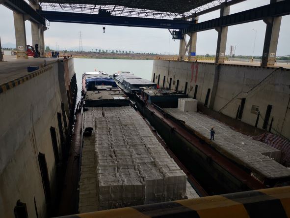 衢州港衢江港區大路章作業區位于衢州市衢江區樟潭街道內,北臨衢江,南至320國道,西起上山溪,東至下山溪,位于安仁鋪樞紐的下游,已建高安大橋的上游。該衢江港區大路章作業區一期工程由浙江數智交院科技股份有限公司進行設計,2021年12月竣工驗收,同時取得113號泊位的港口經營許可證(浙衢港經證0007號),包括500噸級泊位13個(按1000噸級設計),其中15號為散貨泊位、69號為多用途泊位、1011號為全天候泊位、1213號為散貨泊位,配套建有散貨堆場、件雜貨堆場、重箱堆場、簡易堆場、倉庫、全天候倉庫、生產生活輔助用房等,現已正常運營。該工程年設計吞吐量330萬噸,設計年通過能力358萬噸,使用港口岸線長708m,總占地面積236113.6m2