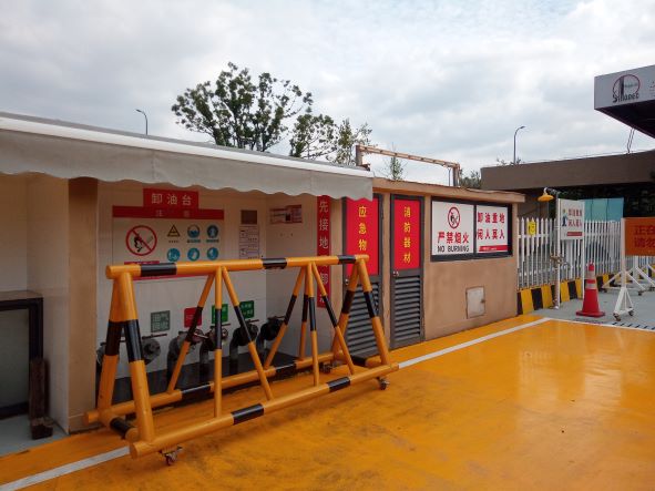 西湖服務(wù)區(qū)北側(cè)加油站位于杭州市雙浦鎮(zhèn)小江村(北側(cè)加油站),加油罩棚下設(shè)有4臺(tái)三油品六槍潛泵式電腦稅控加油機(jī),埋地罐區(qū)設(shè)有3只30m3的汽油罐和2只30m3的柴油罐,均為非車(chē)道罐,加油站在用油罐總?cè)萘繛?st1:chmetcnv w:st="on" TCSC="0" NumberType="1" Negative="False" HasSpace="False" SourceValue="150" UnitName="m3">150m3,柴油罐容折半計(jì)入油罐總?cè)莘e為120m3,按照《汽車(chē)加油加氣加氫站技術(shù)標(biāo)準(zhǔn)》(GB50156-2021)所規(guī)定的等級(jí)劃分,屬于二級(jí)加油站。
