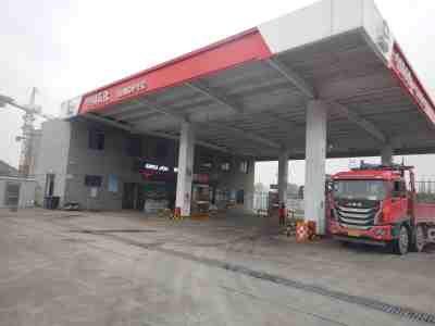 加油站設(shè)置汽油卸油和加油油氣回收系統(tǒng)。加油區(qū)設(shè)置加油罩棚,罩棚為輕鋼結(jié)構(gòu)罩棚。罩棚下設(shè)置2臺三油品六槍和2臺雙油品四槍潛油泵式加油機(jī)(汽油加油槍帶油氣回收)以及1臺尿素液加注機(jī);埋地油罐區(qū)設(shè)有4只30m³埋地臥式單層鋼制油罐(油罐均為非車道罐,設(shè)置在防滲罐池內(nèi)),其中3只30m³汽油罐(分別為2只92#汽油罐和1只95#汽油罐),1只30m³柴油罐(儲存0#柴油),折合油罐總?cè)莘e為105m³(柴油罐容積折半計(jì)入),根據(jù)《汽車加油加氣加氫站技術(shù)標(biāo)準(zhǔn)》GB50156-2021的相關(guān)規(guī)定,該加油站為二級加油站。