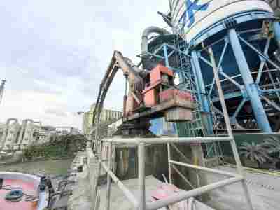 該碼頭3#泊位主要裝卸貨種為粉煤灰和礦粉等散貨,設置一臺負壓卸船機,采用負壓卸船機將粉煤灰及礦粉直接打入筒倉,碼頭前沿作業(yè)帶為10m,并在作業(yè)帶后方設置6個筒倉,作為碼頭中轉(zhuǎn)區(qū)。