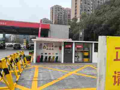 加油區(qū)設置加油罩棚,罩棚下設置2臺雙油品四槍和2臺三油品六槍潛油泵式加油機(汽油加油槍帶油氣回收)和1臺尿素液加注機;埋地罐區(qū)設有4只埋地臥式SF雙層油罐(非車道罐),其中40 m³埋地臥式汽油罐1只(存放92#汽油),30 m³埋地臥式汽油罐2只(分別存放95#汽油和98#汽油),20m³埋地臥式柴油罐1只,折算后油罐總容積110m3(柴油罐折半計入),依據(jù)《汽車加油加氣加氫站技術標準》GB50156-2021第3.0.9條辨識,該站屬于二級加油站;站區(qū)設置6臺充電樁,依據(jù)《綜合供能服務站建設規(guī)范》DB33/T2136-。加油站已安裝汽油卸油和加油油氣回收系統(tǒng)。